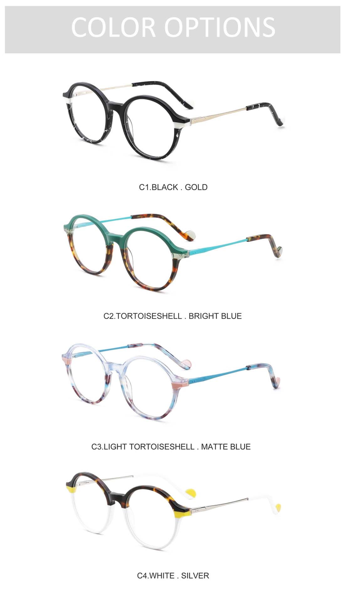 Gd Factory Supply High Quality Acetate Optical Frame Round Eyeglasses Metal Temple Lamination Acetate Eyewear