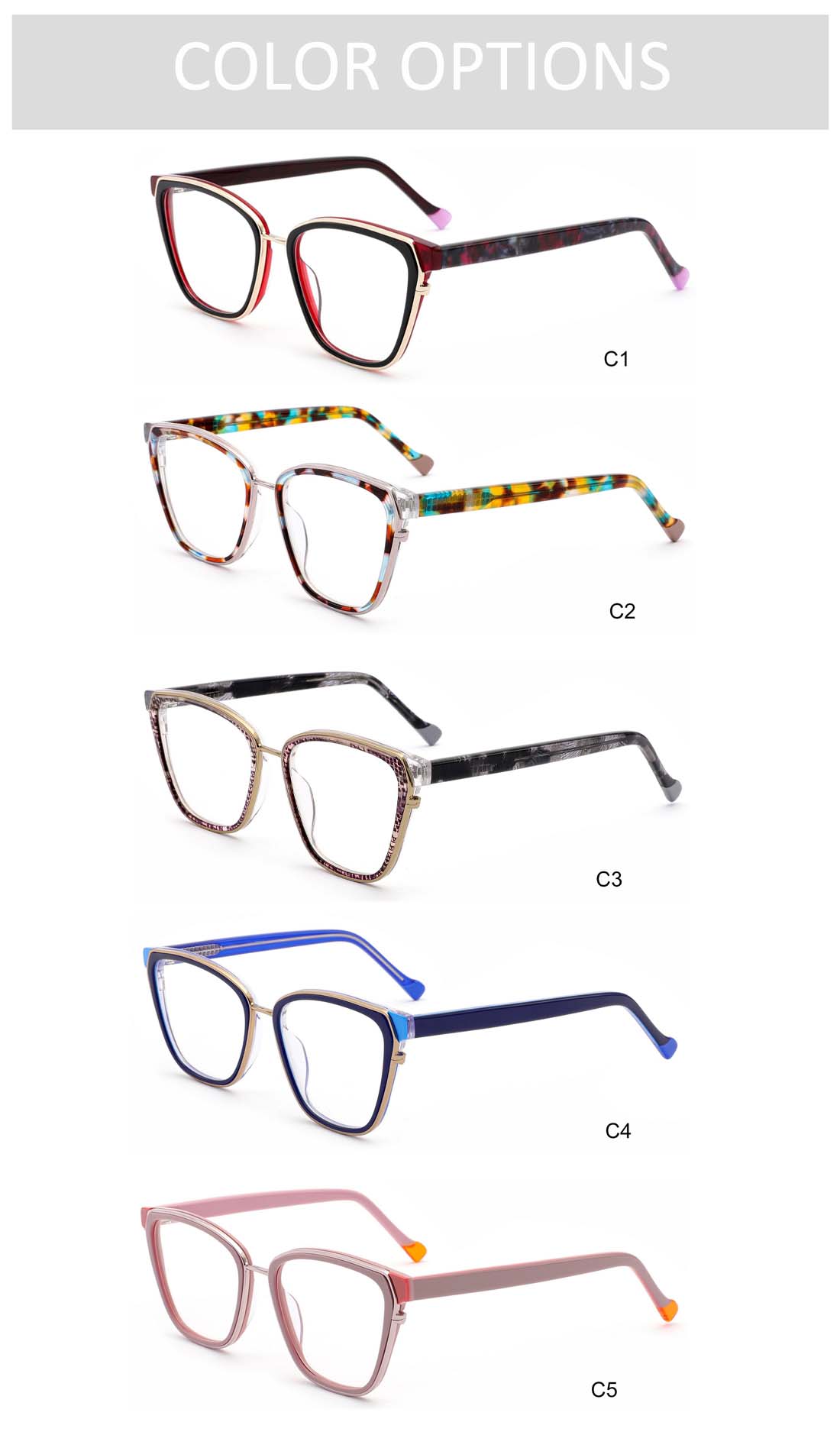 Gd Factory Supply gafas Metal Frame Women Lamination Acetate Eyewear Acetate Optical Frame