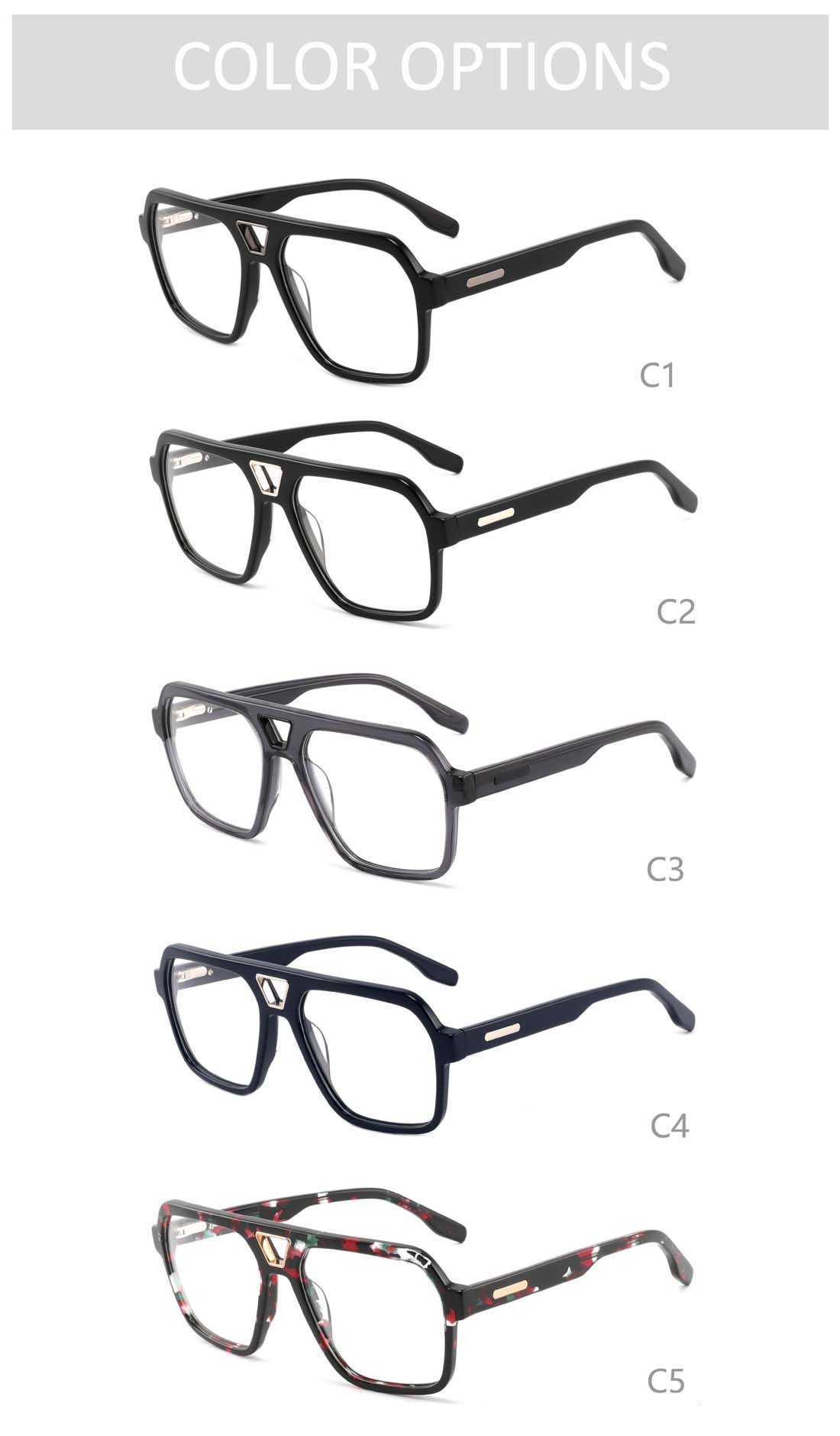 Gd Hot Sale Double Bridge Factory Sourced Over Sized Frame Metal Detail Optical Frame Men Acetate Eyewear