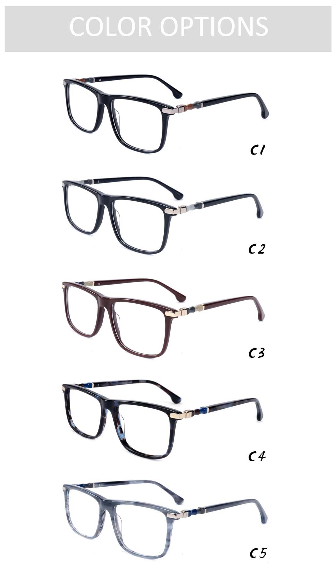 Gd Classic Square Gafas Factory Supply Acetate Optical Frame With Metal Temple Eyewear Men Acetate Eyewear