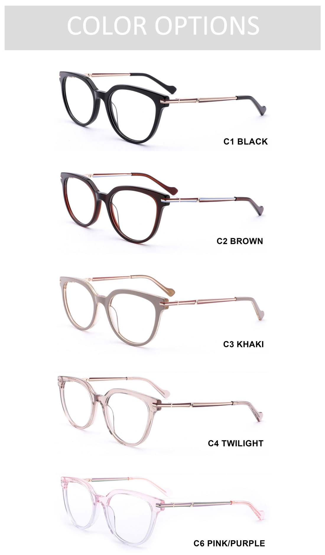 Gd Classic Cat-eye gafas Factory Supply Glasses Acetate Luxury Gold Metal Temple Stylish Eyewear Acetate Optical Frame