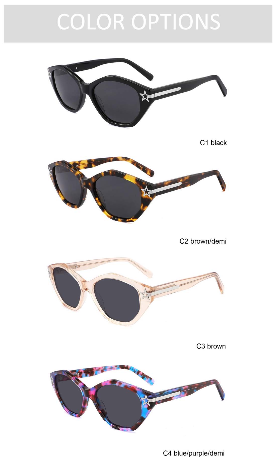 Gd Edgy Cat-eye Acetate Sunglasses gafas Fashion Sunglasses Star Decorative Temple Acetate Polarized Sunglasses
