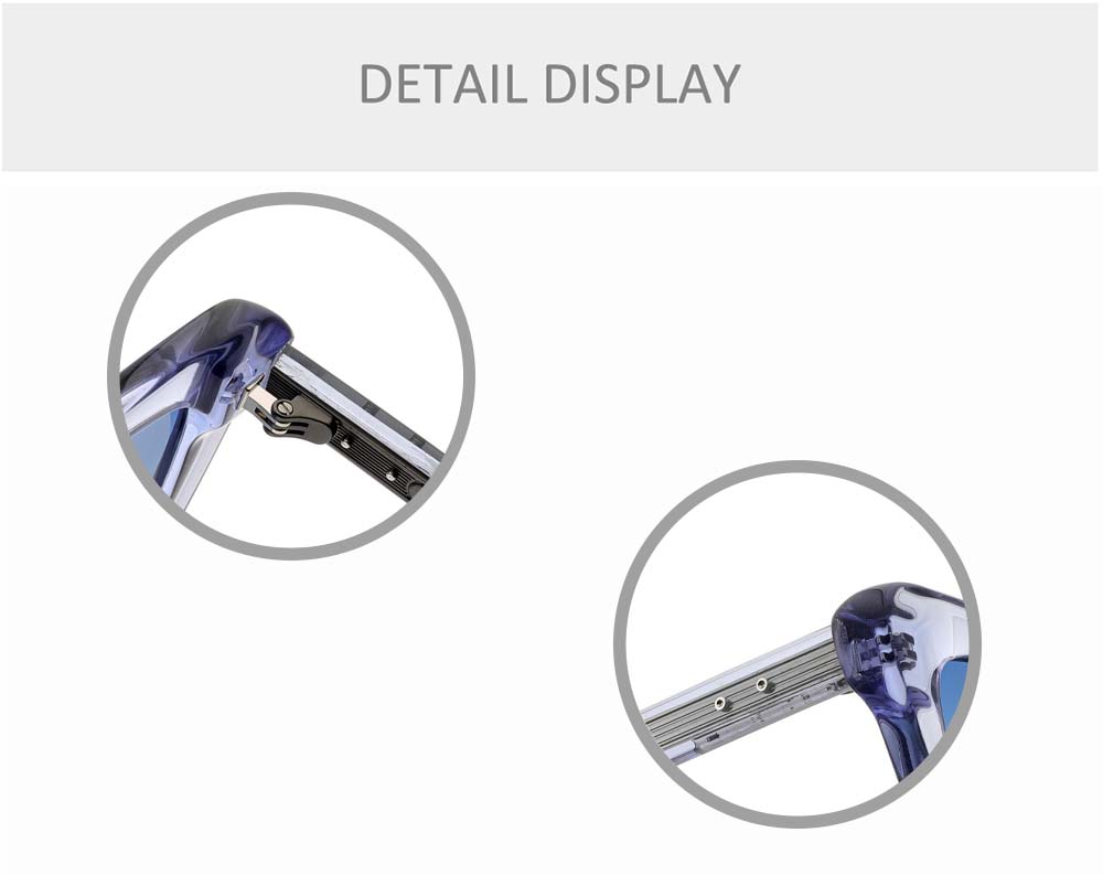 The product using life is more than 3 years after 42356 times of elastic spring leg testing. Durable flexible spring hinges perfectly fit different face size.And the high elastic spring leg can prevent it clip your face.The nose pads of the glasses fit the bridge of the nose, effectively preventing the glasses from slipping and imprinting the skin.The nose pads and hinges are designed to make the glasses less likely to fall off when you are looking down or exercising.