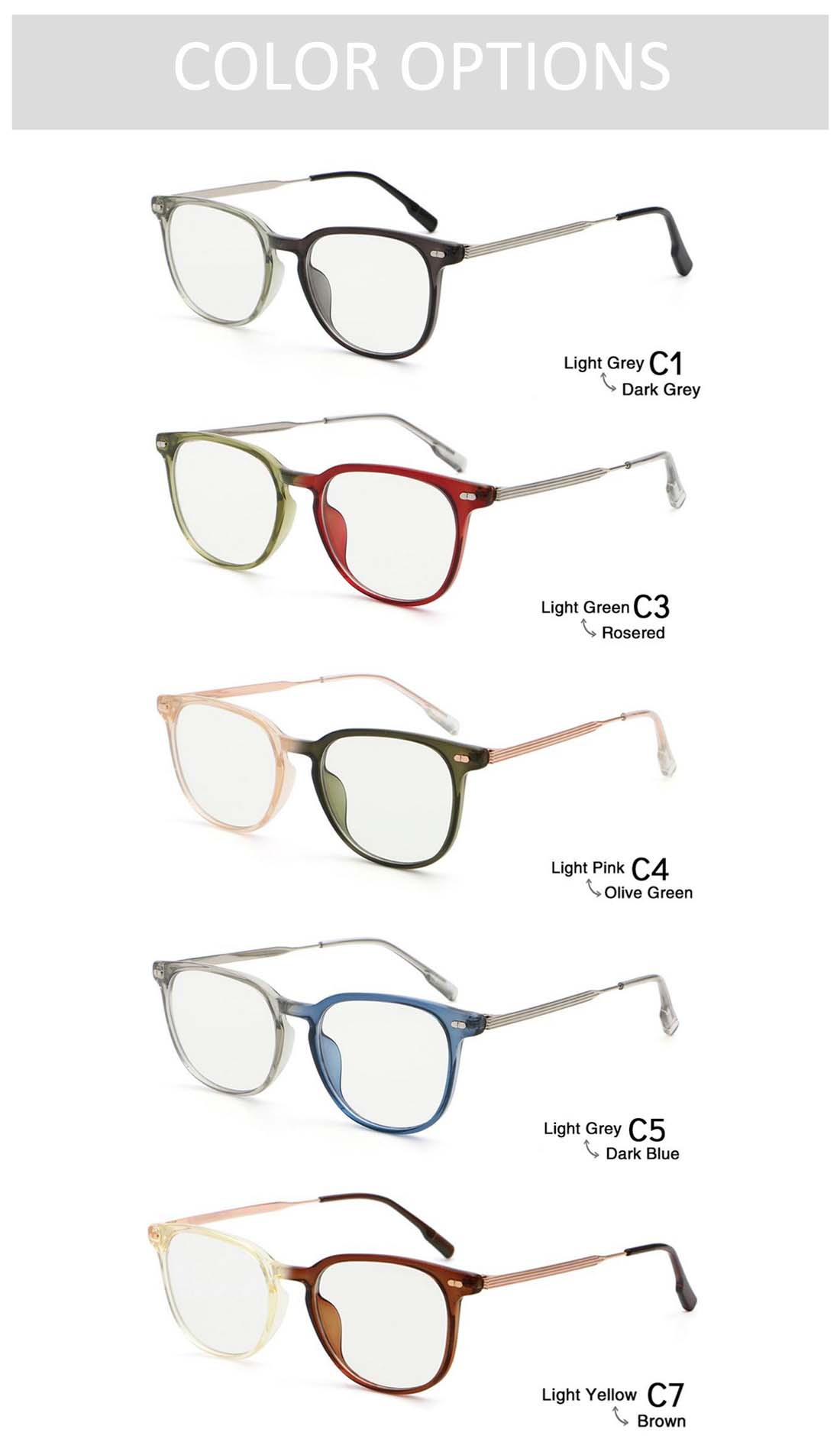 TR90 optical frame can use for 3 years at least, and is difficult to break up. It fits right on the face which can adjust the width,preventing it clip your face and fall down. Its nose pad scan adjust to fully fit the bridge of your nose ,it has increased the applied force area,lightening your burden,reducing discomfort caused by prolonged wear and can not leave imprint .