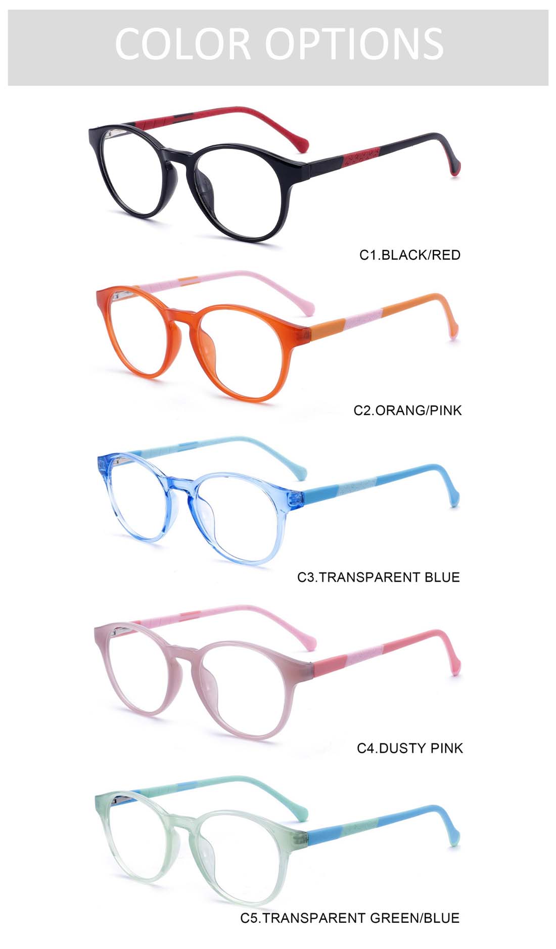 Gd Lightweight Colorful Round TR Optical Frame Rubber Temple Casual Children gafas Manufacturer Supply Kids TR Eyewear