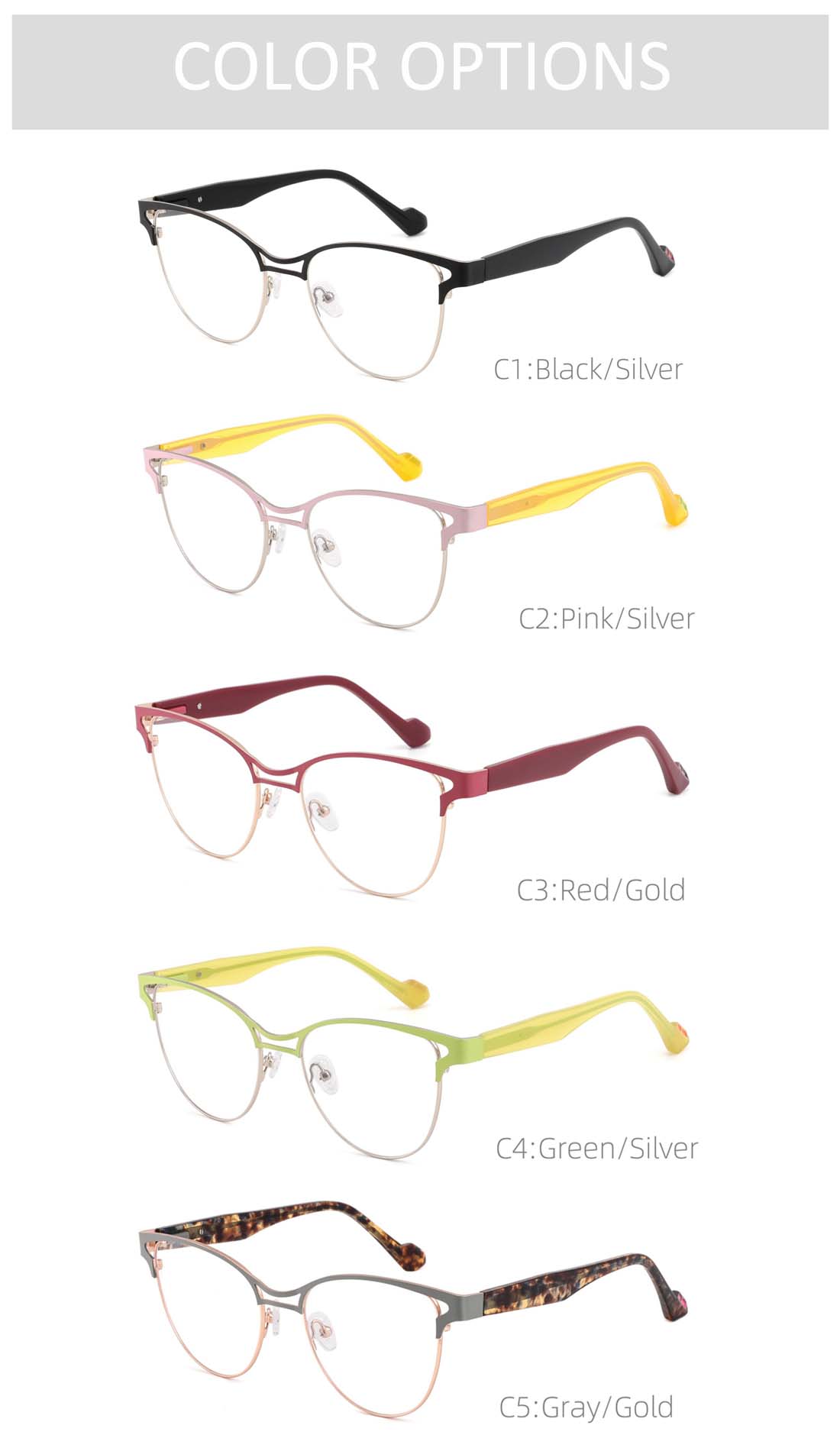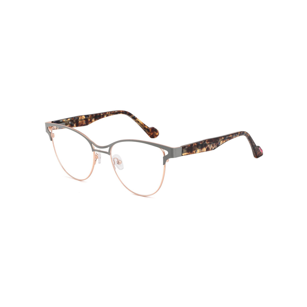 Gd Cat Eye Injection Acetate Temple Wholesale Metal Optical Frame Double Bridge Browline gafas Women Metal Eyewear