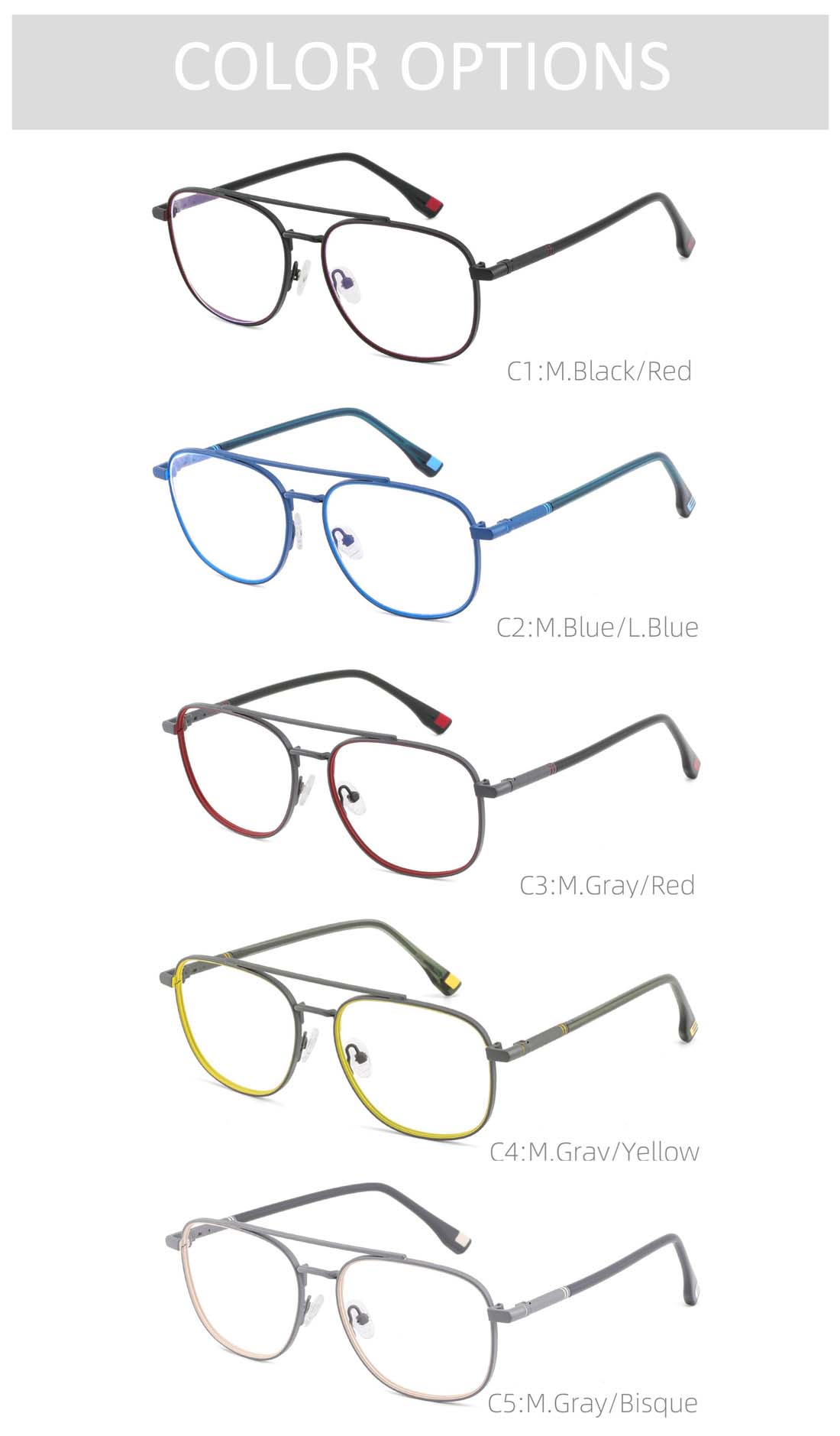 Gd Factory Supply gafas Color Blocking Double Bridge Unisex Metal Eyewear Metal Optical Frame