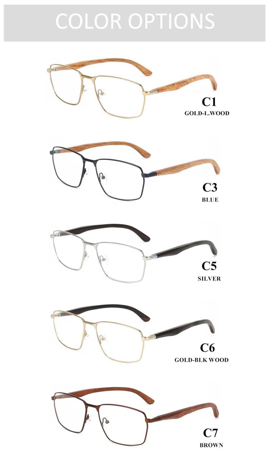 Gd Wooden and Metal Business Style gafas Men Eyewear Factory Supply Glasses with Wooden Temple Metal Optical Frame