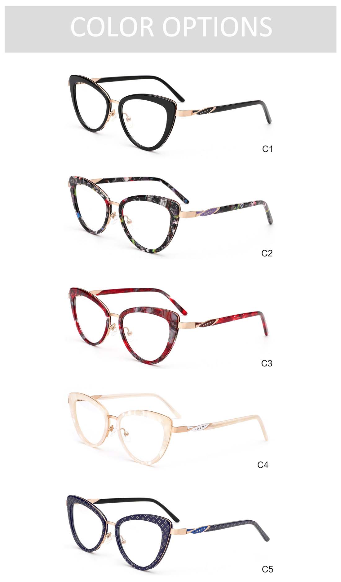 Gd Beautiful Design Temple Retro Pattern Cat-eye Frame Manufacturer Supply Eyewear Acetate Rims Metal Optical Frame