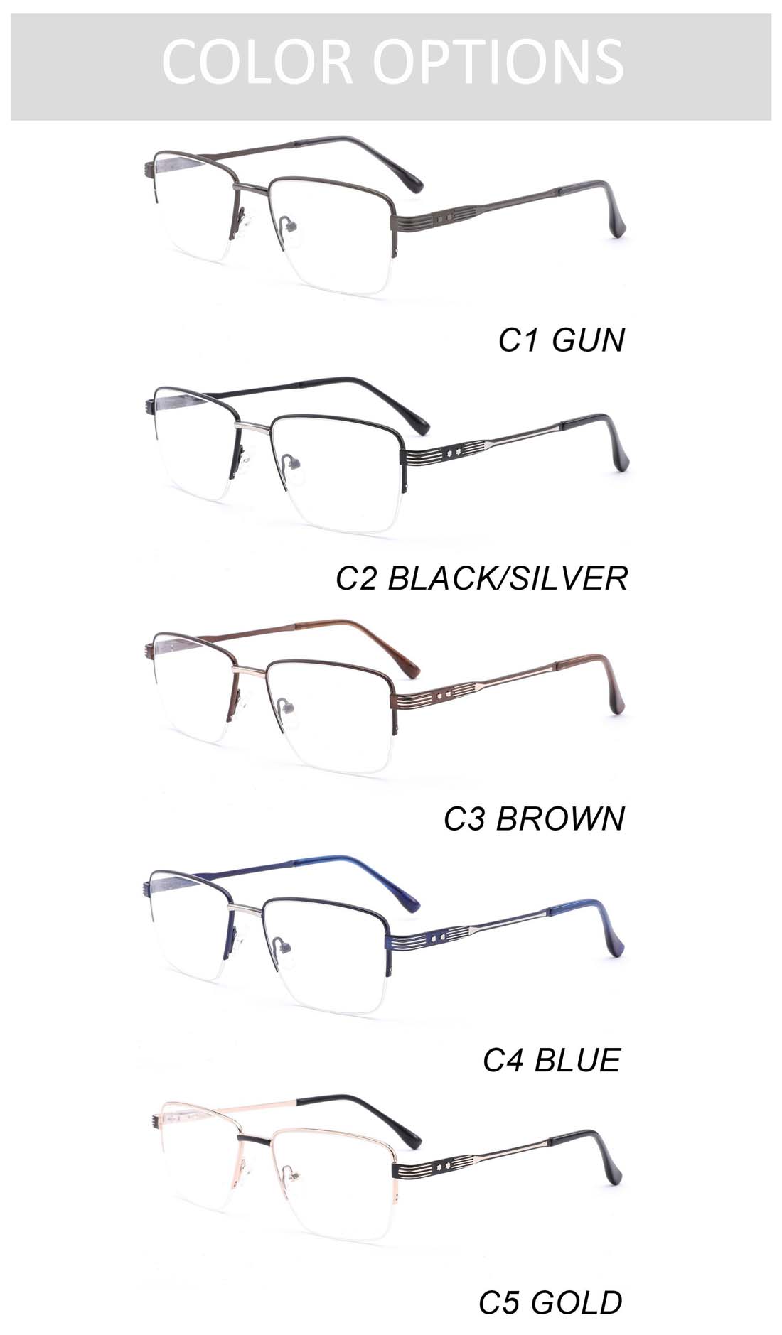 Gd Business Elite Style Metal Optical Frame Semi-rimless Square Metal Eyeglasses Manufacturer Supply gafas Men Metal Eyewear