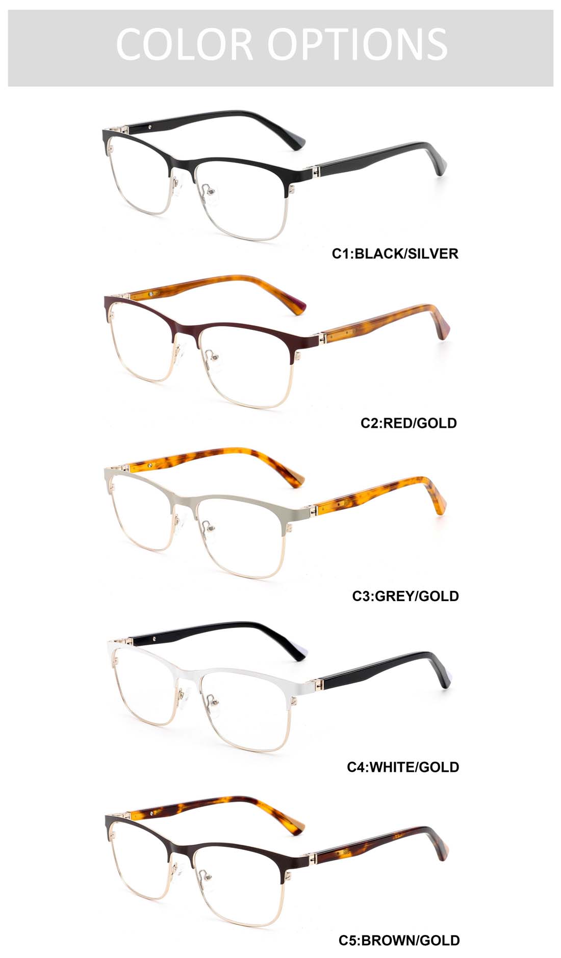 Gd Sleek Browline Metal Optical Frame Factory Supply gafas Contrast 360°Rotating Temple Modern Business-Fit Unisex Metal Eyewear