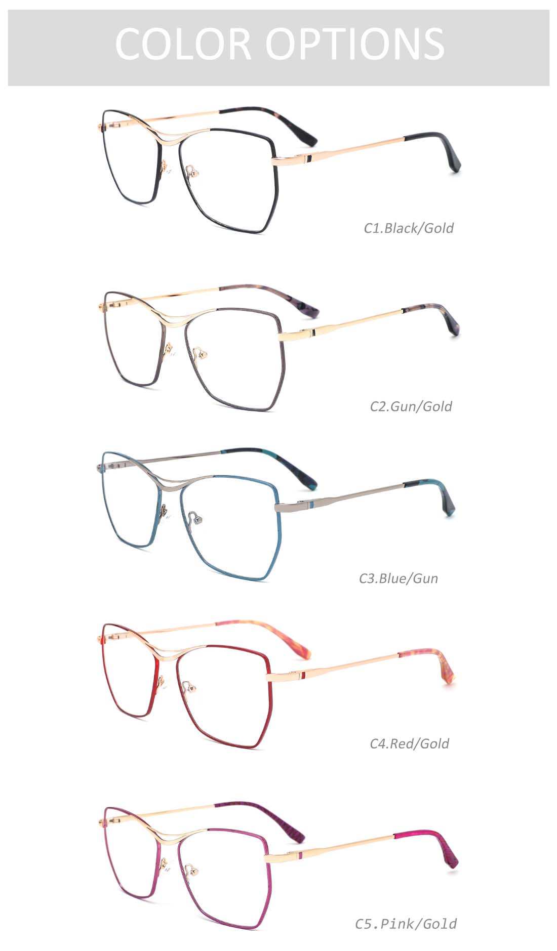Gd Colorful Metal Eyewear Factory Supply Eyeglasses Irregular gafas Double Bridge Metal Optical Frame