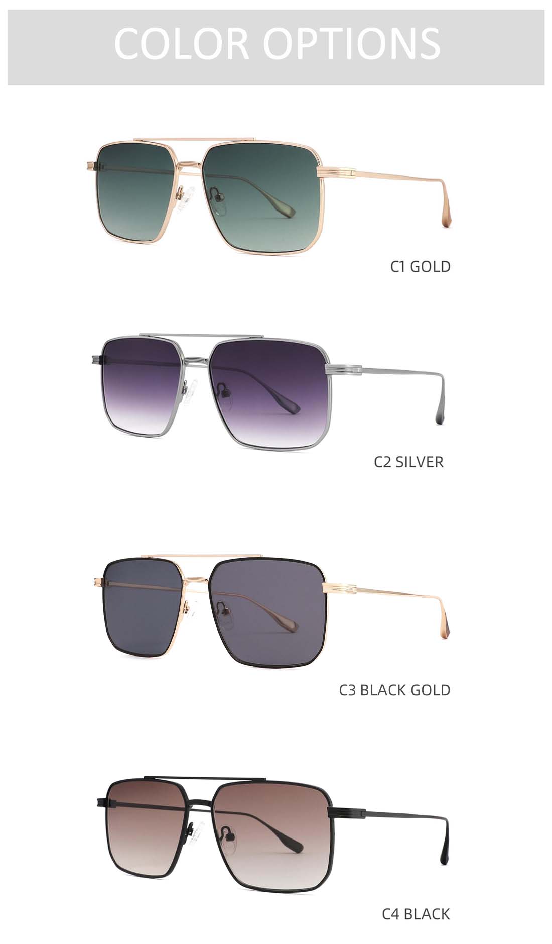 Gd Modern Double Bridge Metal Sunglasses gafas de sol Polarized Sunglasses Chunky Frame Design Trendy Urban Cool Style Metal Polarized Sunglasses