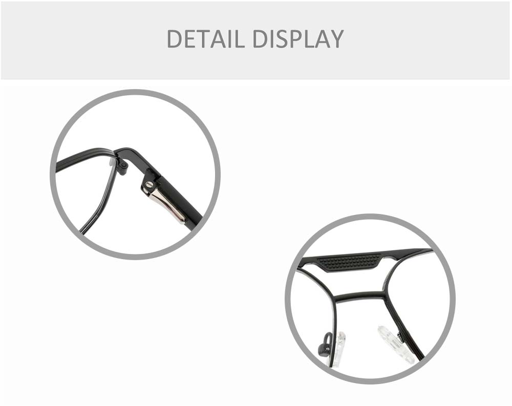 The product using life is more than 3 years after 42356 times of elastic spring leg testing. Durable flexible spring hinges perfectly fit different face size.And the high elastic spring leg can prevent it clip your face.The nose pads of the glasses fit the bridge of the nose, effectively preventing the glasses from slipping and imprinting the skin.The nose pads and hinges are designed to make the glasses less likely to fall off when you are looking down or exercising.