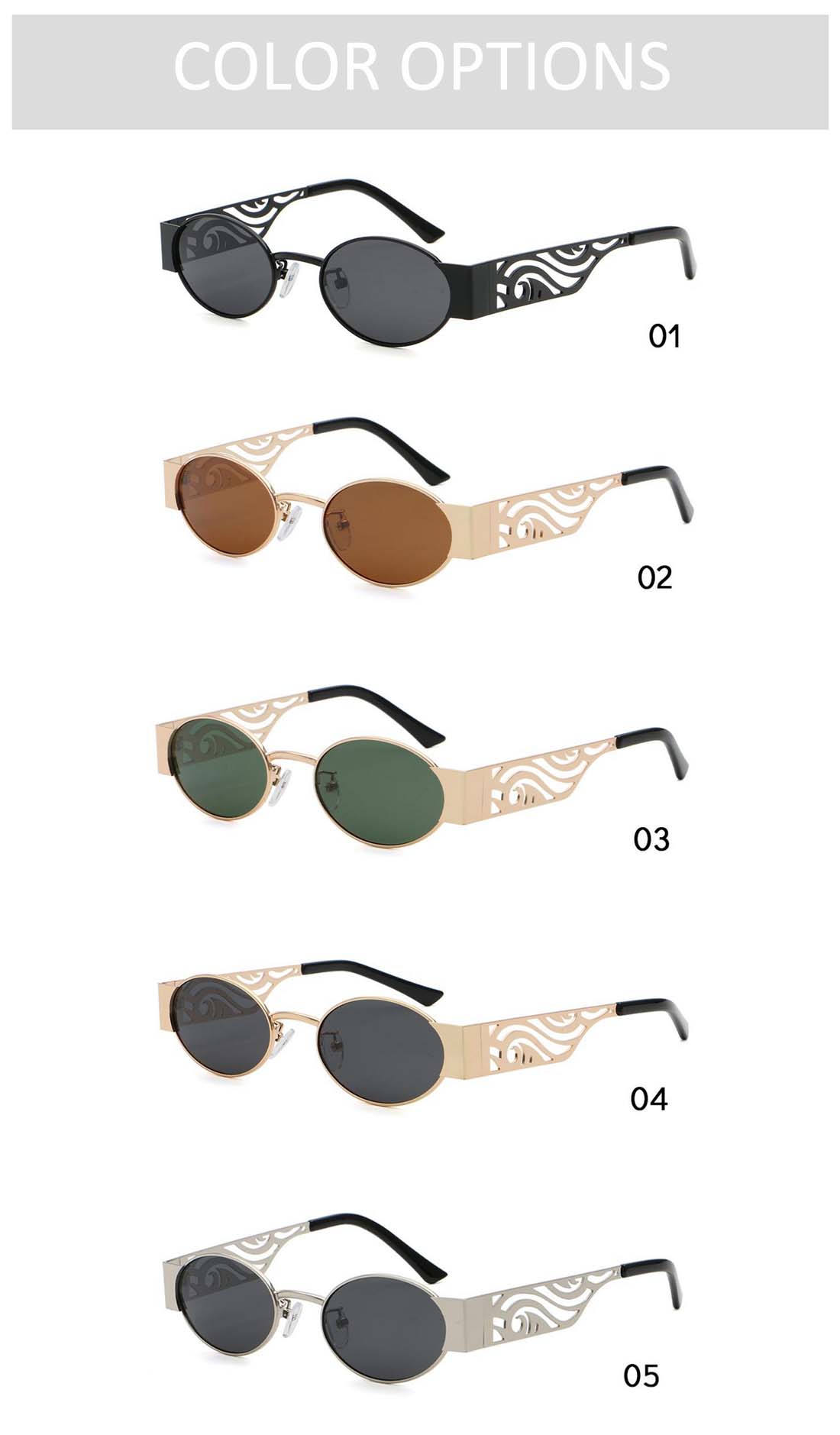 Step into the realm of head-turning style with our new metal sunglasses. These aren’t your ordinary shades—each pair features intricate cut-out patterns (like the eye-catching wave motifs in our featured styles) that blend artistic flair with edgy sophistication. The oval lenses nod to retro trends while feeling utterly modern, and the choice of sleek black or luxurious gold-tone metal ensures there’s a style to match every customer’s aesthetic.