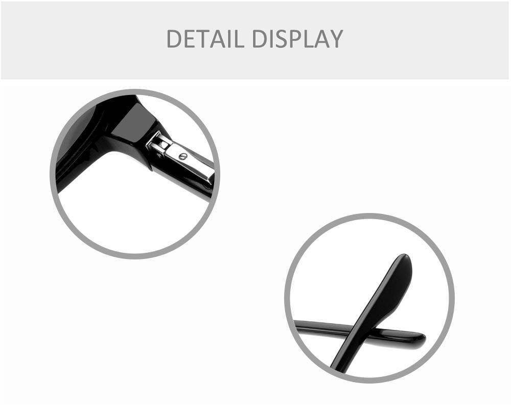 The product using life is more than 3 years after 42356 times of elastic spring leg testing. Durable flexible spring hinges perfectly fit different face size.And the high elastic spring leg can prevent it clip your face.The nose pads of the glasses fit the bridge of the nose, effectively preventing the glasses from slipping and imprinting the skin.The nose pads and hinges are designed to make the glasses less likely to fall off when you are looking down or exercising.