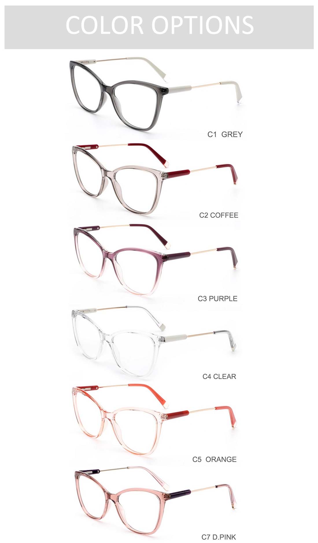 Gd Women TR90 Eyewear Stylish Translucent Factory Supply Eyeglasses Delicate Metal Temple gafas TR Optical Frame
