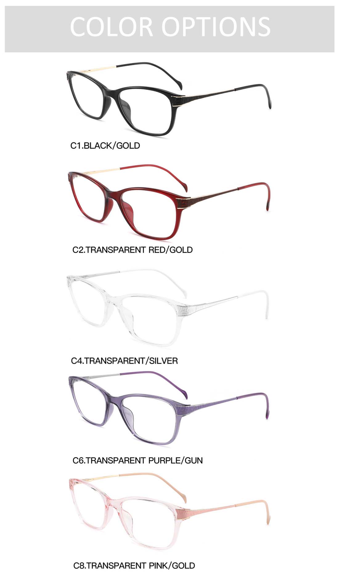 Gd Elegant Cat-eye TR Optical Frame With Featuring Gold Accent Temple Fashion Women gafas Factory Supply Women TR Eyewear